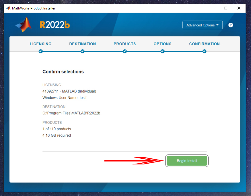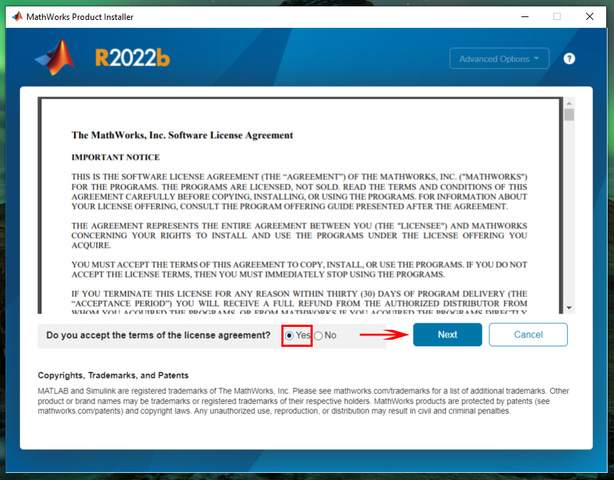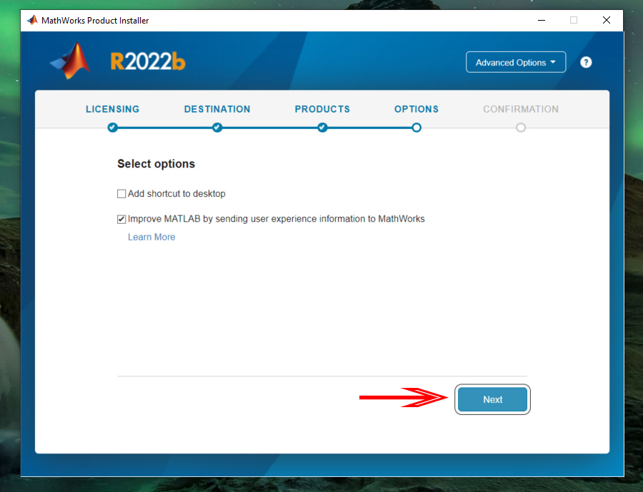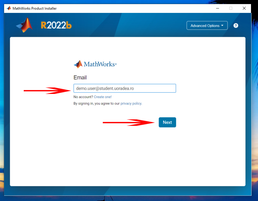 Se poate selecta să fie creată o iconița pe desktop și respectiv interacțiunea cu MathWorks